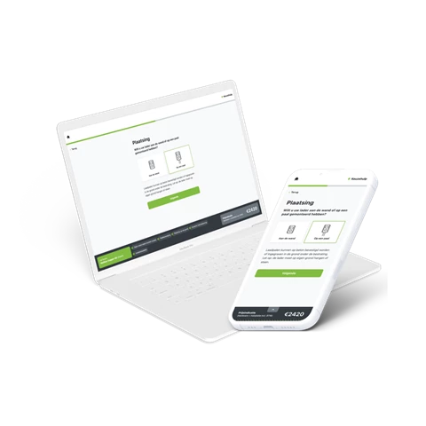 • Deel 1 bestaat uit een inventarisatie van de behoefte en een eerste verkenning van de situatie. Wat voor auto rijdt u? Zakelijk of privé? Hoeveel meter parkeert u de auto van de muur? Vragen als deze leiden tot een concrete prijsindicatie van meerdere geschikte laadpalen.