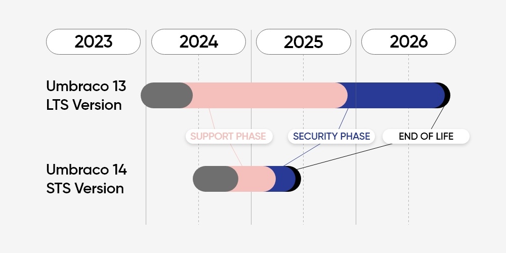 Als je momenteel nog niet in Umbraco 13 zit is het noodzakelijk zo snel mogelijk in actie te komen! Vanaf februari 2025 wordt hier namelijk vanuit Umbraco geen ondersteuning meer geboden.